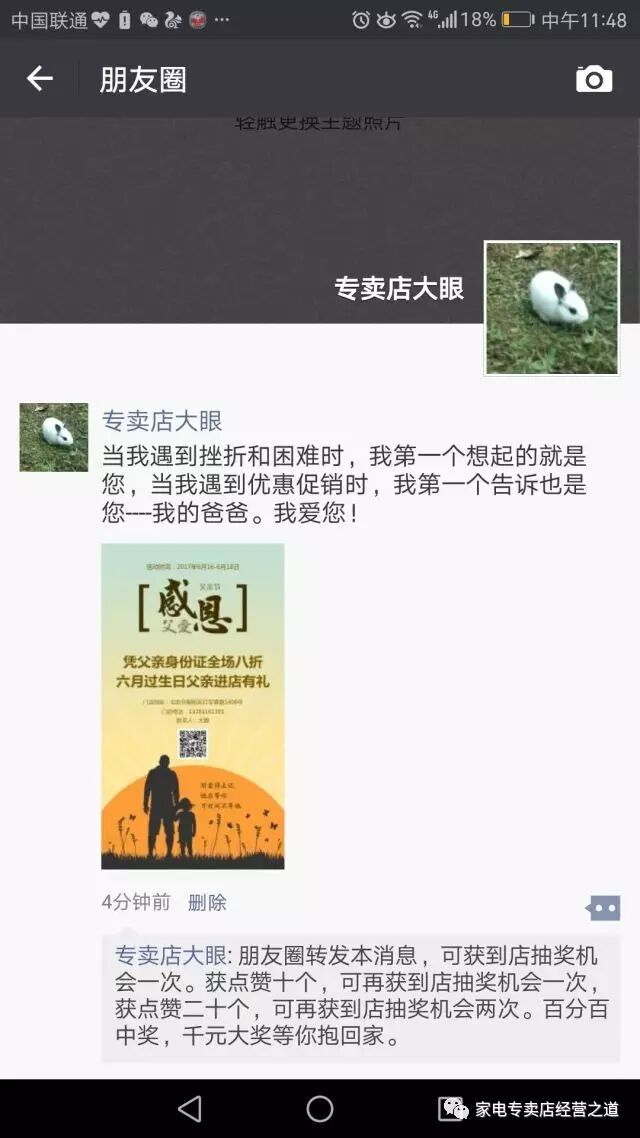 距離父親節(jié)還有一周的時候,親們就可以在店內(nèi)擺起抽獎箱或者抽獎轉(zhuǎn)盤了!抽獎雖然很多專賣店都在用,但是依然是調(diào)動起顧客參與度的絕佳利器,配合門店的其他活動,殺傷力也是致命的。